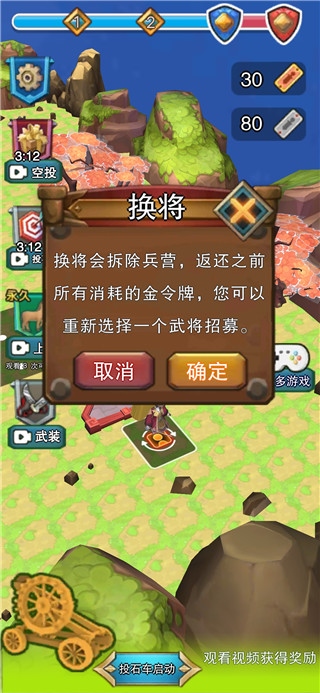 2、收集完资源后,建设兵营,并选择一名武将来加入你的阵容。