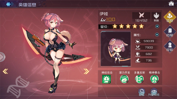 技能包括神经攻击、潜力开发等,侧重于精神类攻击和多重反射伤害。