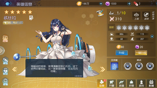 她对电磁和世界规则有独特的理解,技能侧重于控制和伤害。