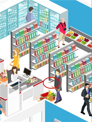 右手有血迹的那名正在购物的女性就是凶手。她和受害人是同事,因受害人抢走了她的男友,愤怒让她决定实施报复。无论出于什么原因,犯罪都是不被法律允许的。