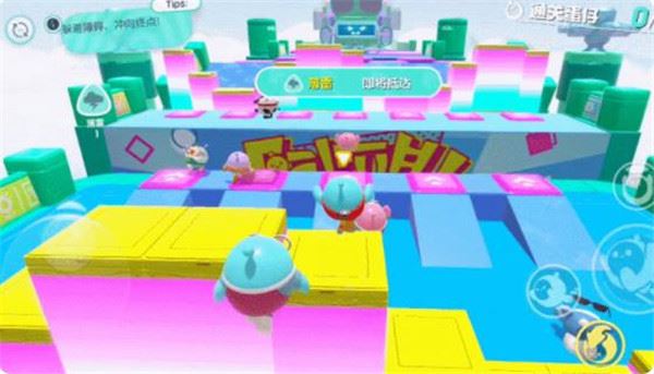 1、巧用滚蛋赢得竞速胜利竞速赛的主要难点之一就是障碍物,除了翻转的地板、摇摆的摆锤、移动的方块和向后的履带等,都是我们速通的障碍。对于普通障碍,找到合适的时机跳过去是可行的,但最快的方式是直接滚起来。而在“滚蛋”模式下,由于速度提升,跳跃的距离也会更远,因此在遇到需要跳跃或者等待较长时间的障碍时,可以通过长距离跳跃快速通过。